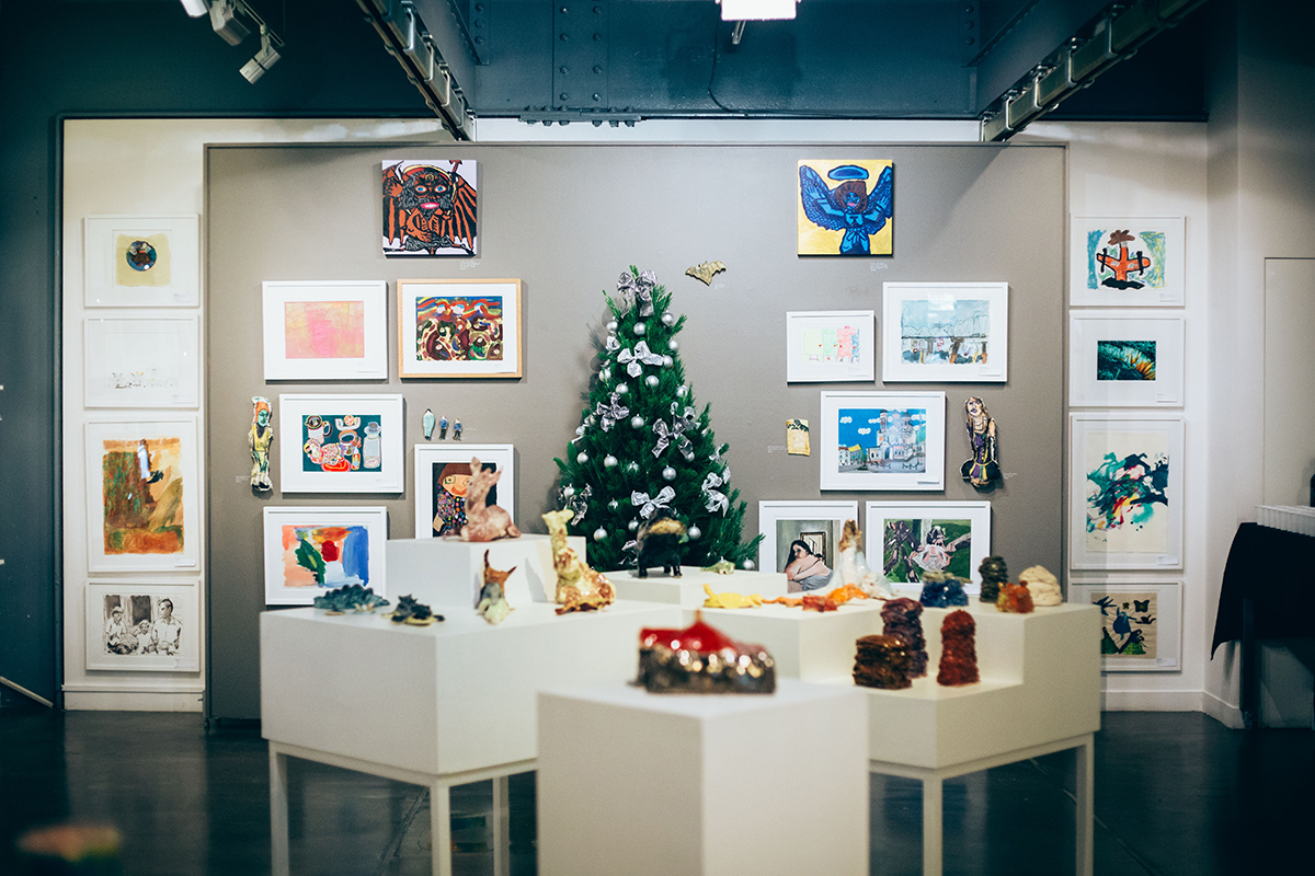 There’s still around 100 works available for sale ranging from drawings, paintings and ceramics, not to mention goodies like Xmas card packs, hip flasks, pot holder, bottle openers, pins, badges and more!