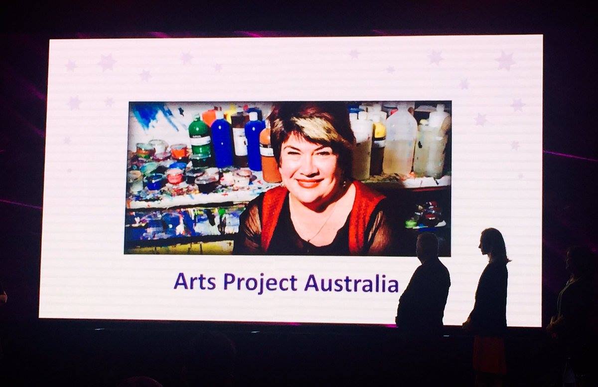 We’re incredibly proud to announce that we’ve won the HESTA Community Sector Awards for the 2016 Outstanding Organisation! Each year the award recognises an organisation which has made an outstanding contribution to social justice in Australia, through the development of a high quality and innovative program, project or specific service. We’re over-the-moon that HESTA has recognised Arts Project’s work in supporting artists with an intellectual disability by providing sustained and individualised pathways into the professional visual arts – we’d like to say a big thanks to HESTA for initially considering our nomination and another huge thank-you to our amazingly dedicated and hardworking board, team and volunteers.