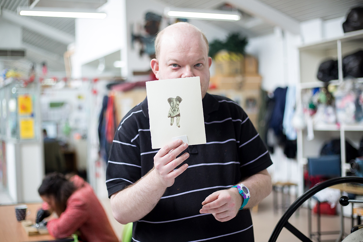 Chris O’Brien at the opening of AIR17. Courtesy the Australian Tapestry Workshop. Photography by Tim O’Connor.