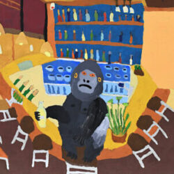 Matthew Gove (b 1977, Melbourne) works across a variety of mediums including painting, ceramics, and soft sculpture. His artworks reveal a penchant for quirky and humorous subject matter, humanising animals and giving them hobbies and chores. These anthropomorphised creatures exist as though they are a result of years of cohabitation and interdependency with their human counterparts, absorbing their habits and traits. Matthew Gove has worked in the Arts Project studio since 2012. His work has been included in several group exhibitions in Melbourne and Sydney, and he is represented in private collections throughout Australia.