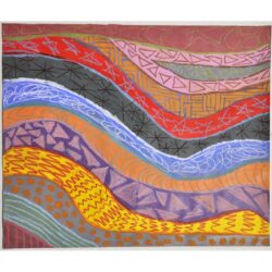 Monica Lazzari creates complex abstract paintings and collage incorporating bold colour fields, bright saturated colours, dot technique, abstract shapes and geometric patterns. Vibrant and multi-layered, she employs a vast colour palette with meticulous application of media. The works are active spaces, resonating with energy. Lazzari has been a regular studio artist at Arts Project Australia since 2006. She presented her first solo in 2021 and has been included in numerous group exhibitions including Home, Arts Centre Melbourne and Now the heart is filled with gold as if it were a purse, curated by Glenn Barkley, Arts Project Australia Gallery, Melbourne. Her work is held in national and international private and corporate collections.
