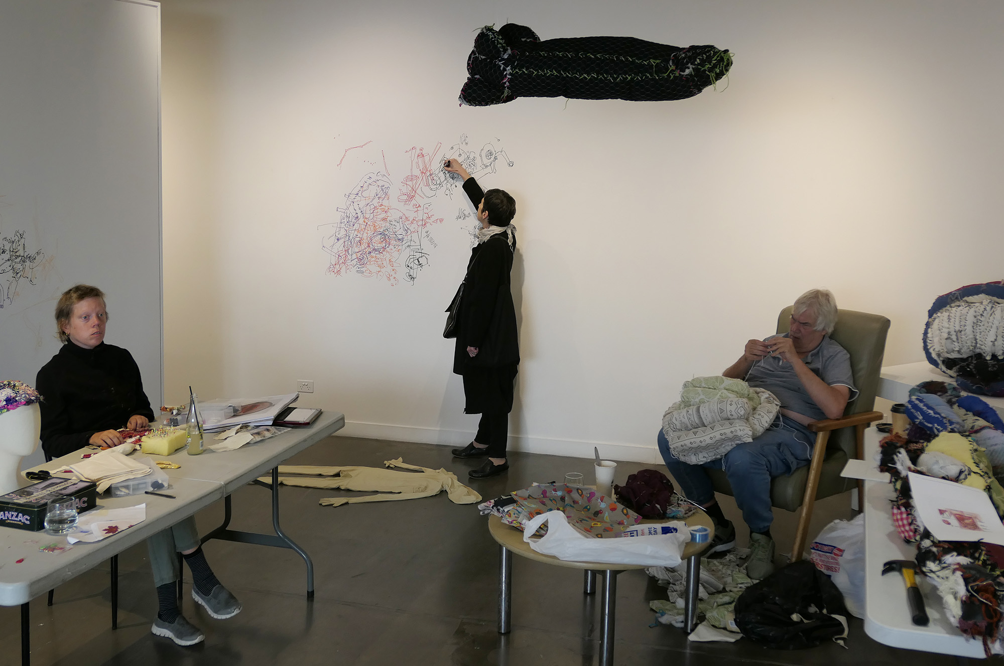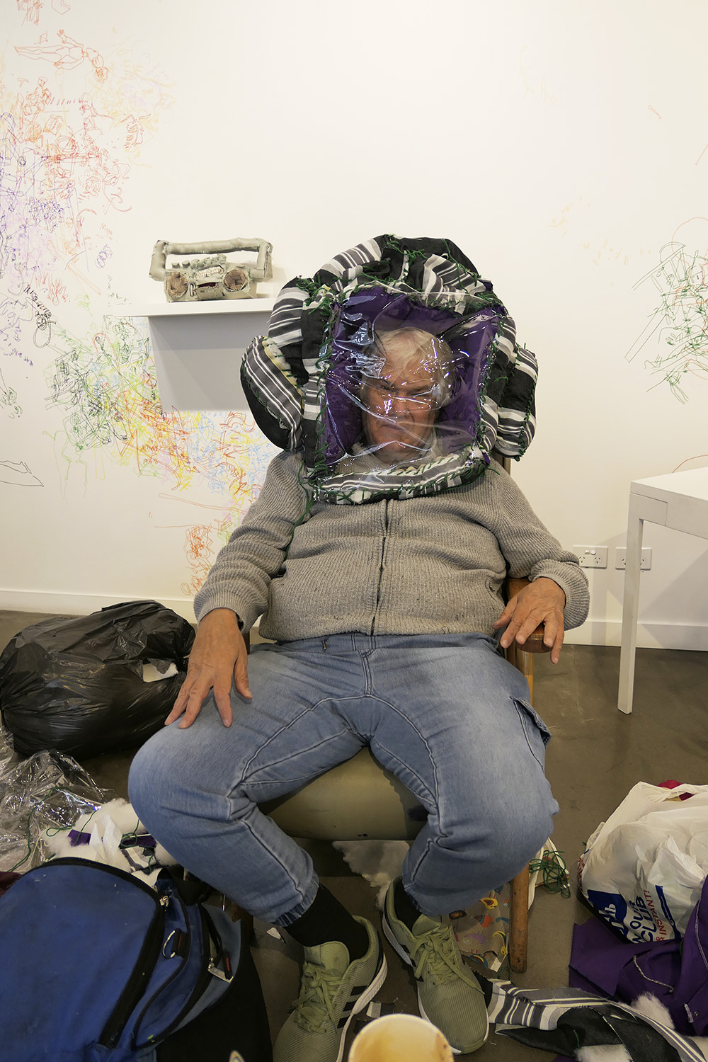 With the exhibition divided into a series of collaborations among three rooms, Wlodarczak invited Arts Project artists Bronwyn Hack and Terry Williams to collaborate with her for A ROOM OF HAPTIC KNOWLEDGE. The three artists worked side-by-side for five days to produce an immersive incarnation of the largest bodily organ; skin.